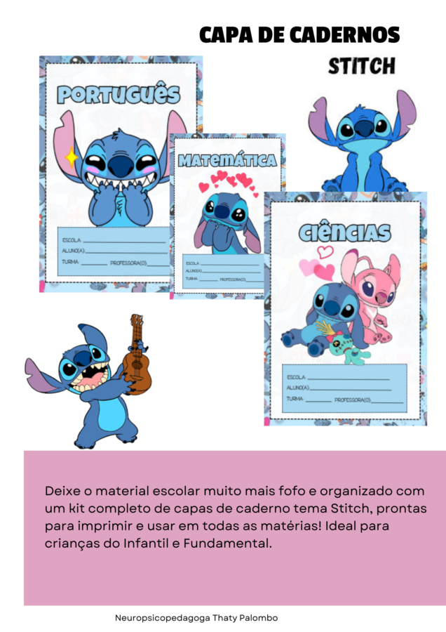 📚 CAPAS DE CADERNO – TEMA STITCH (TODAS AS MATÉRIAS) | ARQUIVO DIGITAL PDF